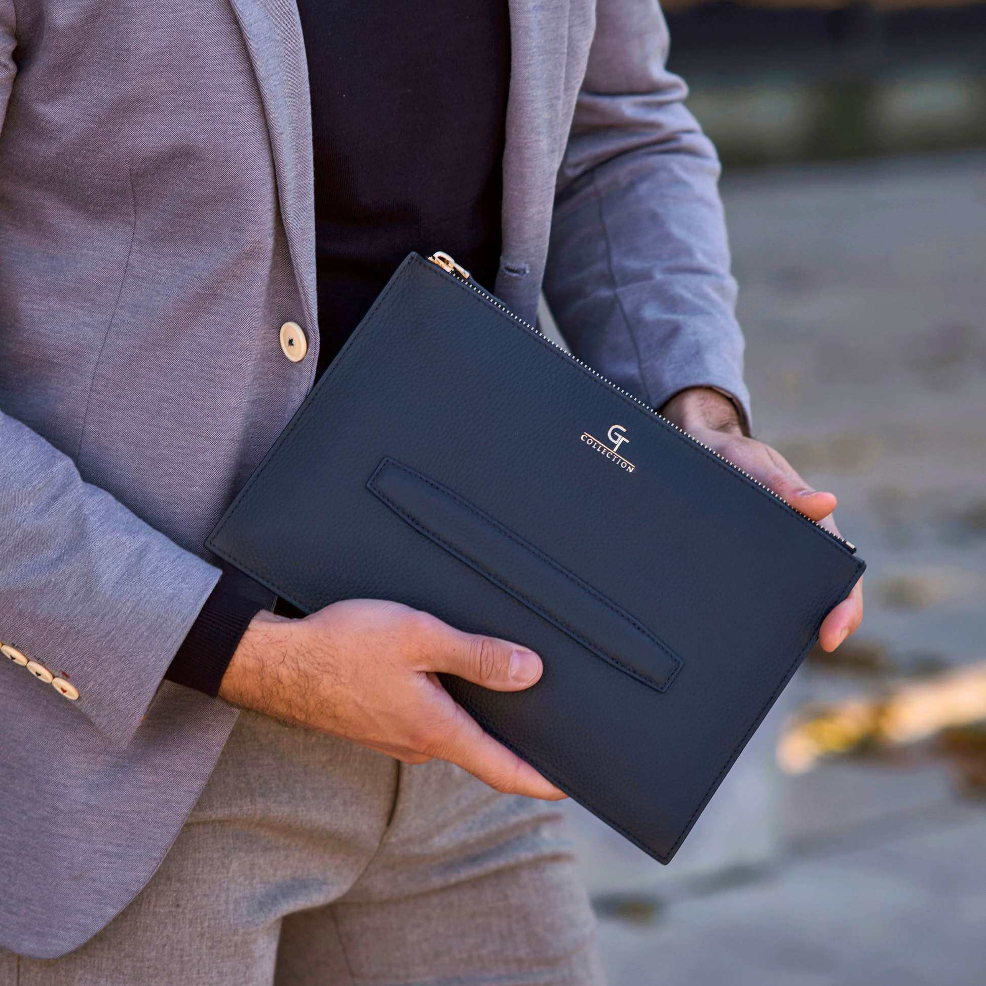 Men's Blue Leather HANDBAG + Free Leather WALLET & CARD HOLDER - Gift Set
