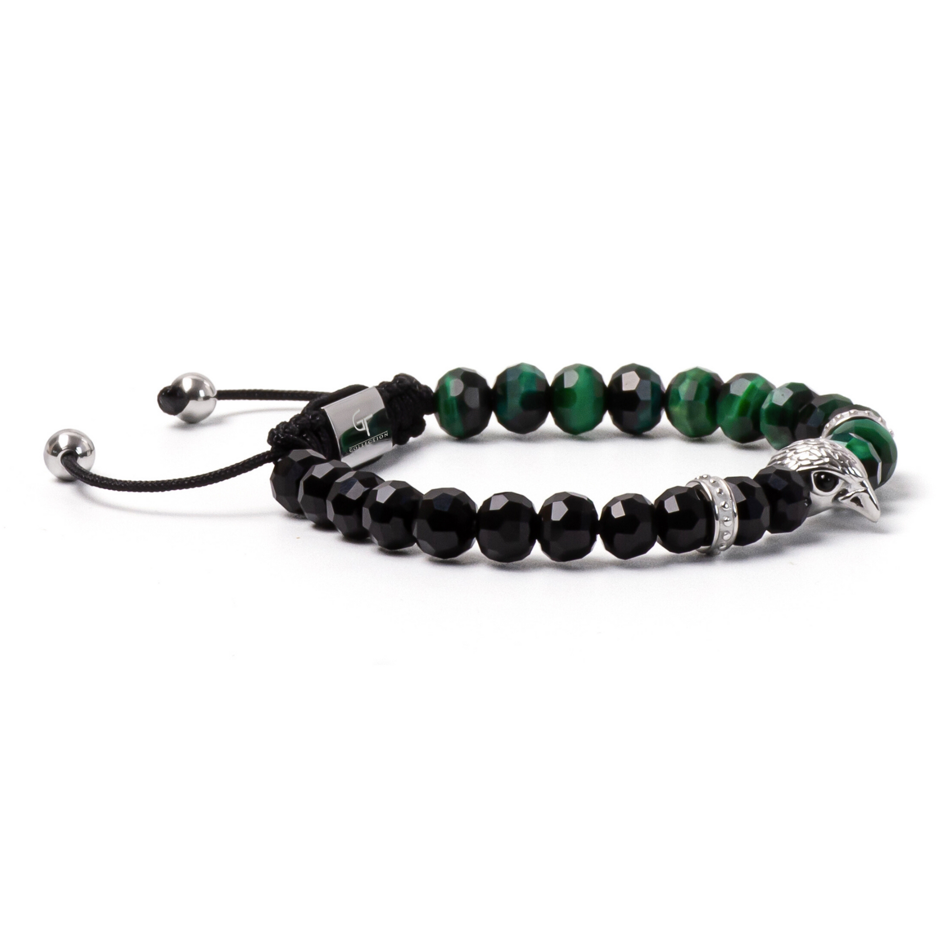 Bracciale AMERICAN EAGLE da uomo con pietra OCCHIO DI TIGRE VERDE, ONICE